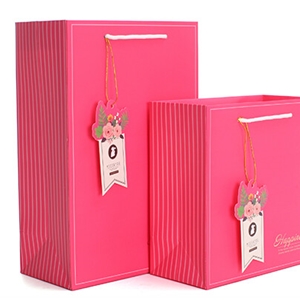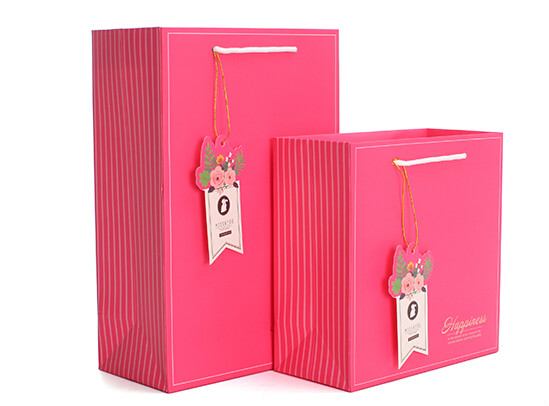 玫紅唯美化妝品白卡紙袋定制