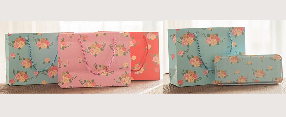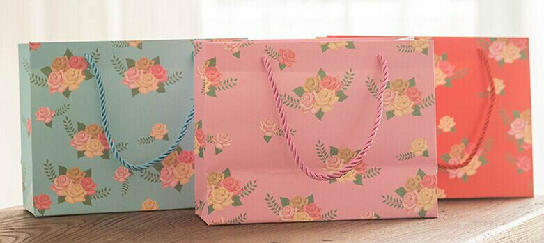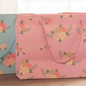 玫瑰花唯美化妝品白卡紙袋定制